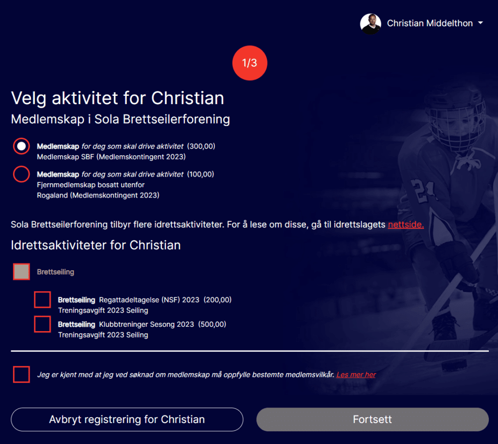 SBF har valgt å ikke benytte funksjonen “utsendelse av faktura” som ligger i Klubbadmin. Vi sender istedenfor ut en vanlig email med link til betalingssiden. Dermed har alle medlemmer mulighet å selv velge om de ønsker å delta og på hvilke aktive idrettsaktiviteter / treningsavgifter – se bilde under.